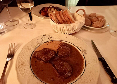 La Esquina del Real est située dans le quartier des Austrias, juste à l'angle des rues Amnistía et Unión, un emplacement parfait pour dîner après une soirée à l'Opéra ou une après-midi de lecture dans les jardins de Sabatini... savourer un repas après une promenade sur la Plaza de Oriente, en admirant le Palais Royal, la cathédrale de l'Almudena ou en visitant le nouveau Musée des Collections Royales... tous des lieux chargés d'histoire. Comme une fin parfaite à un plan, profitez de la meilleure cuisine française de la capitale à La Esquina Del Real. Un bistro orné d'ustensiles en cuivre et de petites reliques ramenées de France, le tout entouré de grands piliers en pierre, de poutres en bois et de briques apparentes... Et avec ces éléments, notre chef prépare l'un des Parmentier de Queue de Bœuf les plus délicieux de la capitale, Steak Tartare, Confit de Canard, Escargots Bourguignonne sans coquilles, ou des abats, rarement vus sur les menus d'autres restaurants dernièrement... sans oublier la célèbre soupe à l'oignon gratinée... un vrai délice. Tout cela avec les meilleures matières premières locales.